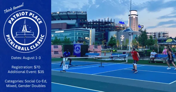 Welcome to the Patriot Place Pickleball Classic! Join us at Patriot Place for a day filled with fun, competition, and pickleball excitement.